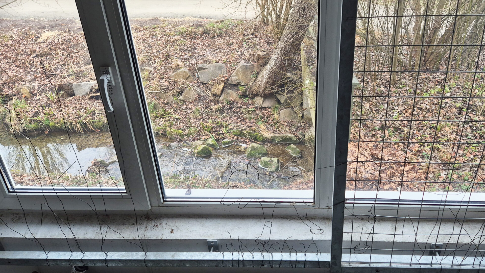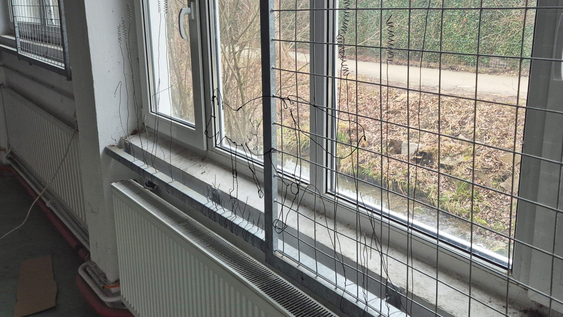 Die Baustelle befindet sich im südlichen Teil von Konstanz, direkt am Grenzbach. Hinter einem unscheinbaren Fenster verbirgt sich ein wunderschöner Ausblick auf den Bach – genau an jener Stelle, an der er besonders malerisch über die Steine fließt und unter der Brücke verschwindet. Da diese Öffnung jedoch sehr unauffällig ist und genauso aussieht wie alle anderen, soll dort eine Kunstinstallation aus Draht angebracht werden. Sie soll die Aufmerksamkeit auf diesen Bereich lenken und die Personen im Raum dazu bewegen, an die Scheibe heranzutreten und das Stück Natur dahinter zu entdecken.